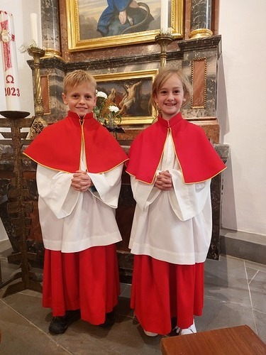 In der Vorabendmesse zum Christkönigsfest am Samstag, den 25.11.2023, wurden unsere zwei neuen Ministrantenkinder Maja Fink und Elian Heinzle in der Gemeinschaft willkommen geheißen. Wir freuen uns, dass ihr euch für diesen wichtigen Dienst in der Pfarre entschieden habt und wünschen euch viel Freude!